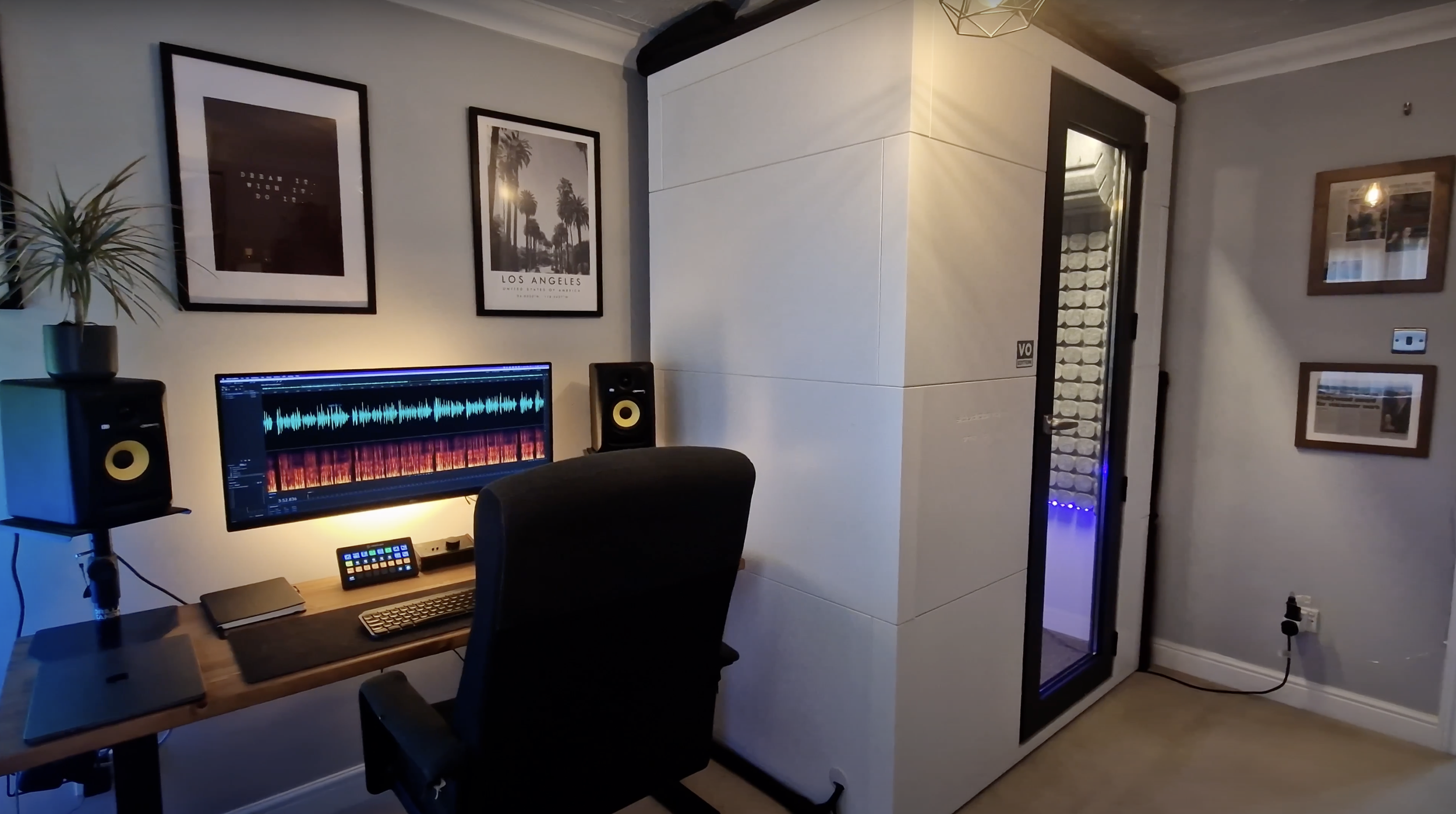 A broadcast quality, home studio offering pristine sound and every possible connection for remote recording sessions.